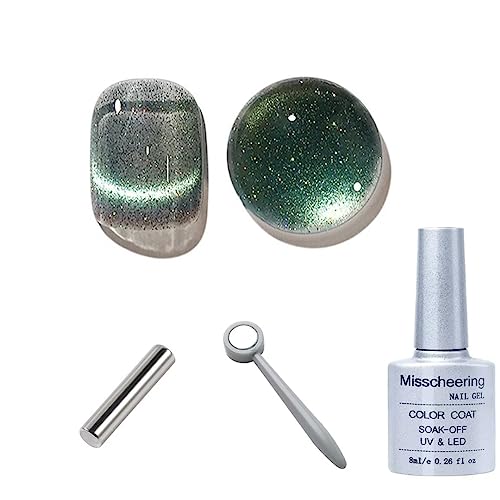 鉄粉が中央に集まり、猫の目のような美しい光の筋が現れます。