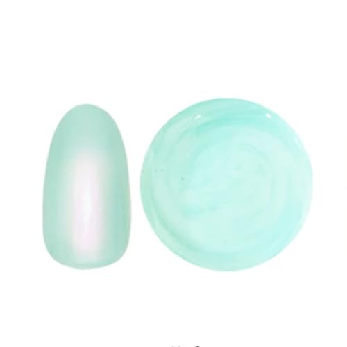 さらに「偏光」パールであるため爪の丸みや見る角度に応じて、ピンクがかって見えたりミントグリーンのような光沢を帯びたりと常に表情が変化します。